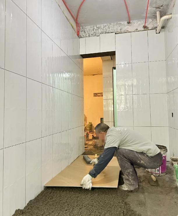 所以,在铺装之前,你得把所有需要额外加钱的施工项目都和师傅谈好,比如全屋通铺、墙地通缝、倒海棠角、壁龛做坡度、卫生间门做单包套等等。